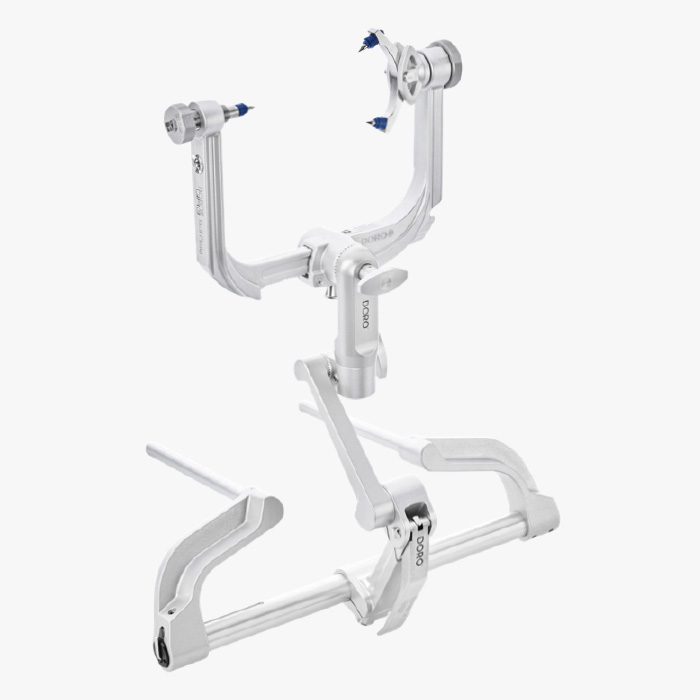 El sistema de fijación craneal DORO® QR3 se ha diseñado para usarlo diariamente en aplicaciones neuroquirúrgicas no imagenológicas. Características como las interfaces integradas de adaptadores de navegación y la compatibilidad Mix & Match con los productos radiotransparentes DORO® hacen de él un producto versátil que ahorra tiempo.