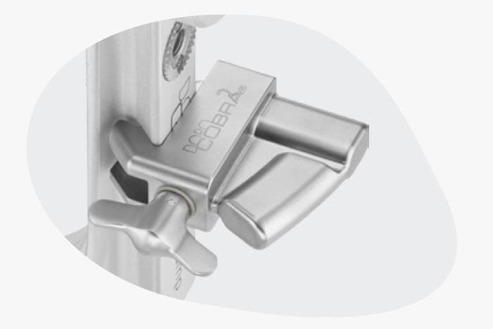 Puede acoplarse directamente a una mesa quirúrgica a través de la interfaz neural o montarse en sus carriles laterales mediante los adaptadores de carril lateral DORO®. También puede acoplarlo a productos radiotransparentes DORO® por medio del adaptador Mix & Match.