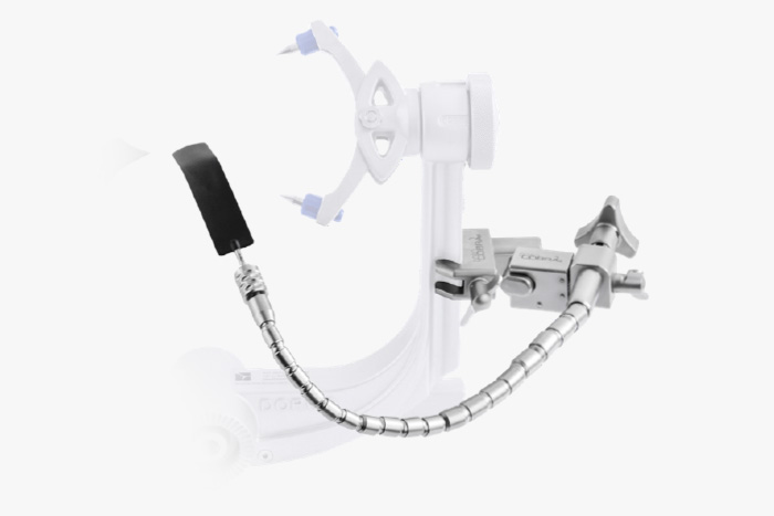 El sistema de separación cerebral DORO COBRA® es el sistema de separación cerebral preferido para una obstrucción mínima y acceso al campo quirúrgico. Los brazos flexibles giratorios DORO COBRA® se acoplan directamente al Quick-Rail® del soporte craneal QR3 DORO® o del soporte craneal radiotransparente DORO®. Se puede usar una configuración combinada de componentes DORO LUNA®, que garantiza mejores posibilidades de configuración y aplicación.